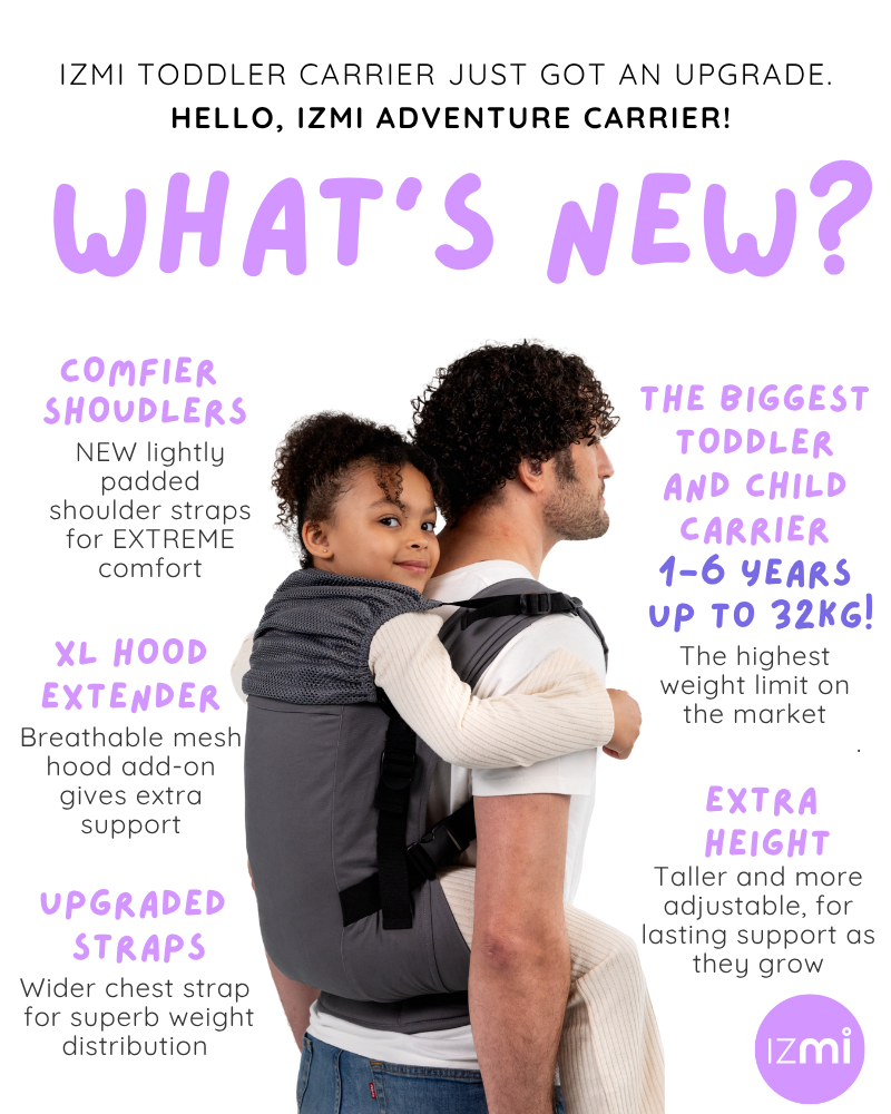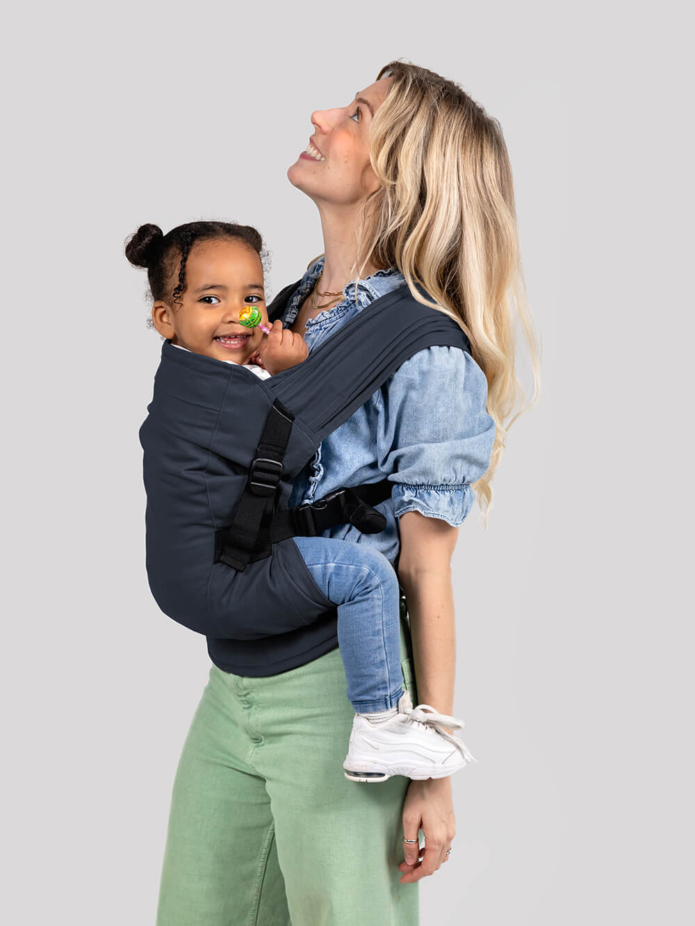 If you’ve got a larger baby or smaller toddler and want to carry them facing outwards for short spells, our Izmi Baby Carriers are designed for exactly that.