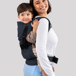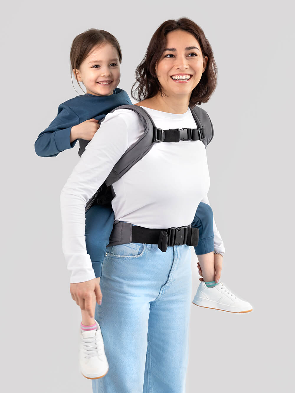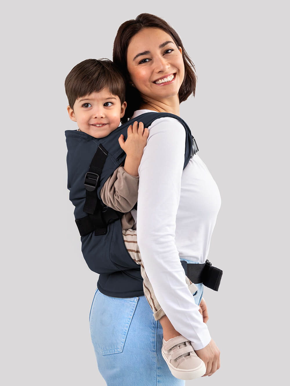 Yes. While the classic deep ‘M’ position isn’t necessary for kids over 12 months who are walking, the Adventure Carrier still offers a wide, width-adjustable, well-supported seat across their thighs and bottom. That support helps distribute their weight more evenly, making it more comfortable for them — and much easier on your back.