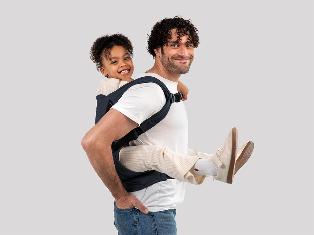 Yes. While the classic deep ‘M’ position isn’t necessary for kids over 12 months who are walking, the Adventure Carrier still offers a wide, width-adjustable, well-supported seat across their thighs and bottom. That support helps distribute their weight more evenly, making it more comfortable for them — and much easier on your back.
