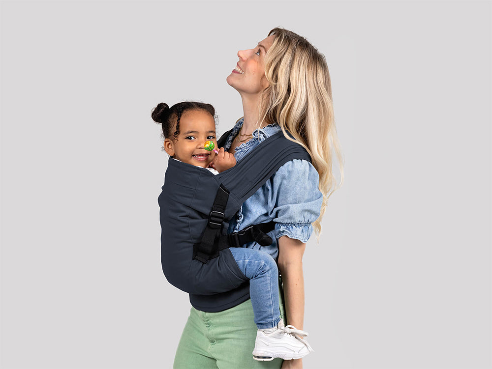 If you’ve got a larger baby or smaller toddler and want to carry them facing outwards for short spells, our Izmi Baby Carriers are designed for exactly that.
